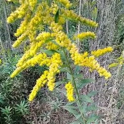 加拿大一枝黄花(学名:Solidago canadensis L.):是桔梗目菊科的植物,又名黄莺、麒麟草。多年生草本植物,有长根状茎。茎直立,高达2.5米。叶披针形或线状披针形,长5-12厘米。头状花序很小,长4-6毫米,在花序分枝上单面着生,多数弯曲的花序分枝与单面着生的头状花序,形成开展的圆锥状花序。总苞片线状披针形,长3-4毫米。边缘舌状花很短。