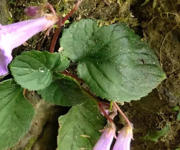 睫萼长蒴苣苔:多年生草本。根茎扁圆柱状,长3-12厘米,绿色,有横纹,似蚂蝗状,下侧生多数须根。叶根聚生,肉质;叶片阔卵形,先端短尖,基部心形歪斜,边缘有钝齿,上面深绿色,下面淡绿色,两面均被白色节状毛。聚伞花序密被节状毛;花紫蓝色。蒴果线形,熟时2瓣裂。花期春、夏季。