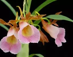 大序隔距兰 Garay):茎直立,扁圆柱形,伸长,达20余厘米,通常粗5-8毫米,被叶鞘所包,…