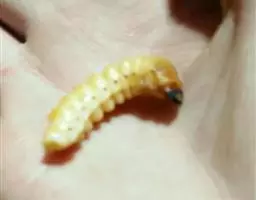幼虫:老熟幼虫体长约24~39mm,头部褐色,胸足3对,短小,腹部乳白色,肛腹片上的刺毛呈倒“U”字形2纵行排列,每行刺毛数为19~22根,体向腹面弯曲呈C字形,背面隆起多横皱纹,头较小,胴部粗胖,黄白或乳白色。