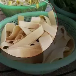 材料:臭豆腐四块,酸菜二片,大豆芽四两,冬菇六只,红辣椒一只,芫茜适量。
