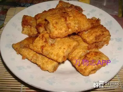 菜豆腐 长沙人称臭干子,特点:焦脆而不糊、细嫩而不腻、初闻臭气扑鼻,细嗅浓香诱人,具有白豆腐的新鲜爽口,油炸豆腐的芳香松脆。