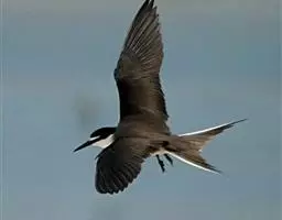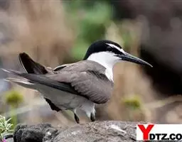 褐翅燕鸥:中型水鸟,体长360-370毫米。与乌燕鸥相似,体型稍小。额白,连接白色眉纹,…