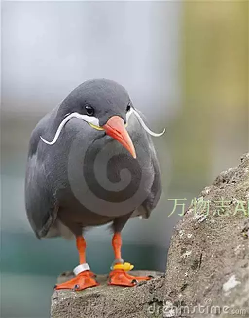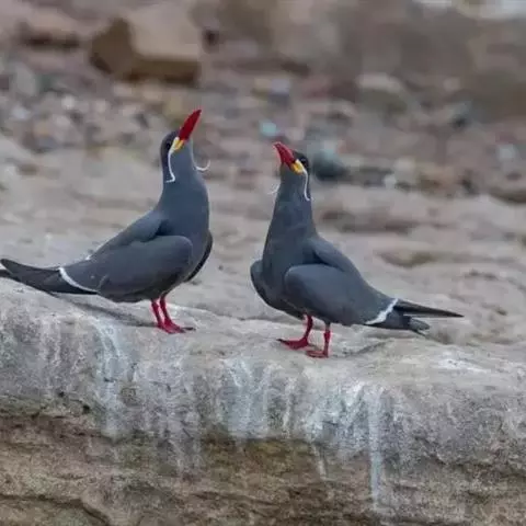 印加燕鸥体色深灰,体长 40 厘米左右,白色的卷曲触须突出在外。