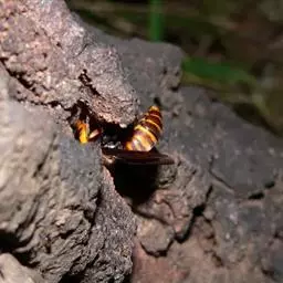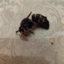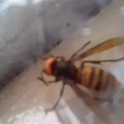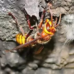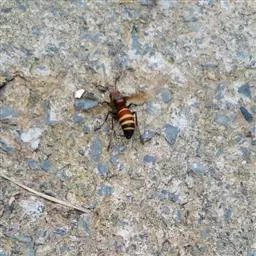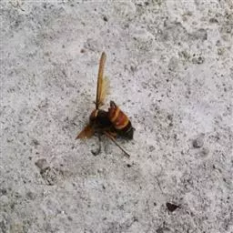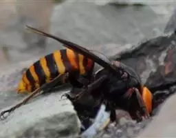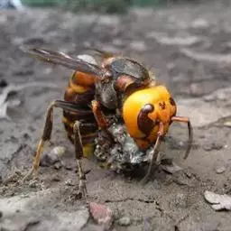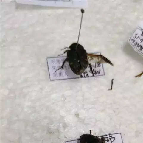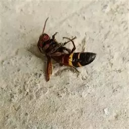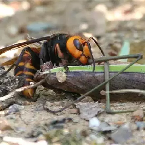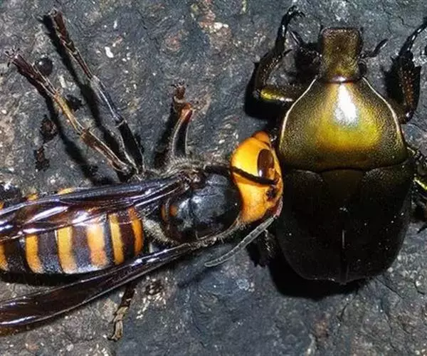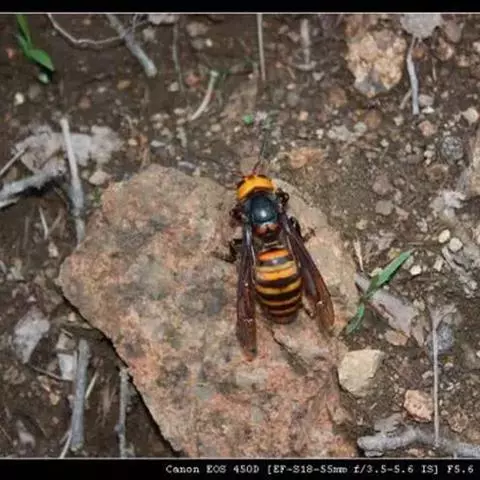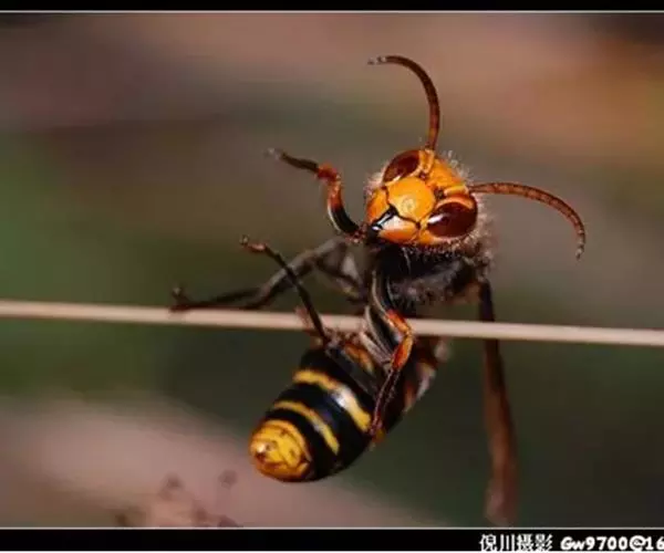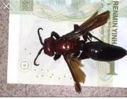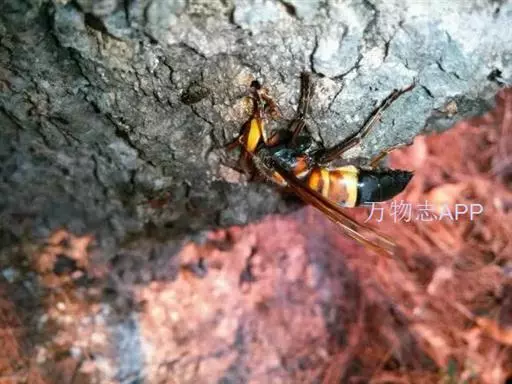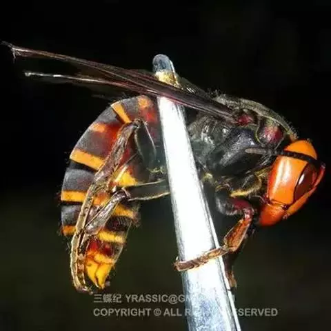 为膜翅目,胡蜂科。体长竟达40毫米,是世界上最大的胡蜂。头部:宽较胸部窄,但略宽于前胸背板前缘;胸部:前胸背板前缘中央略隆起,被中胸背板端部分开,肩角明显,前缘两侧黄棕色,其余均呈黑褐色,但有的个体肩角处各有1棕色斑,刻点几无,但布有棕色毛。腹部:除第6节背、腹板全呈橙黄色外,其余各节背板均为棕黄色与黑褐色相间。捕食多种昆虫,在生物防治上有较大利用价值,同时亦会吸食成熟水果,带来一定害处。属东洋、古北区系共有种。