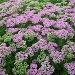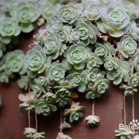 是八宝属多年生肉质草本;常为倒卵形对生至轮生叶子;夏秋开淡红色花,花极茂盛成顶生伞房状聚伞花序,一部分雄蕊远较花瓣长。