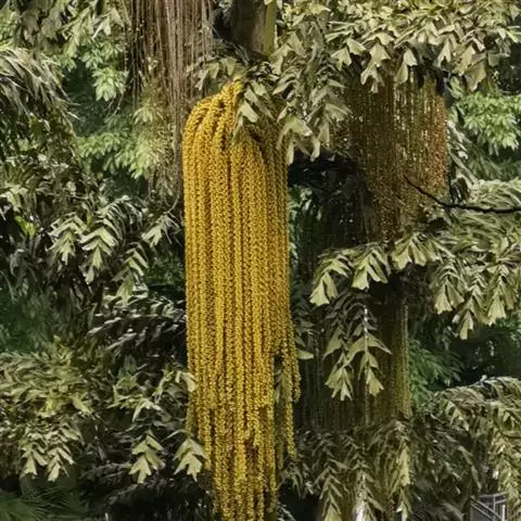 酒椰,茎直立,中等乔木状,高达5-10米。叶为羽状全裂,全长12-13米;羽片线形,长1.2-2米…