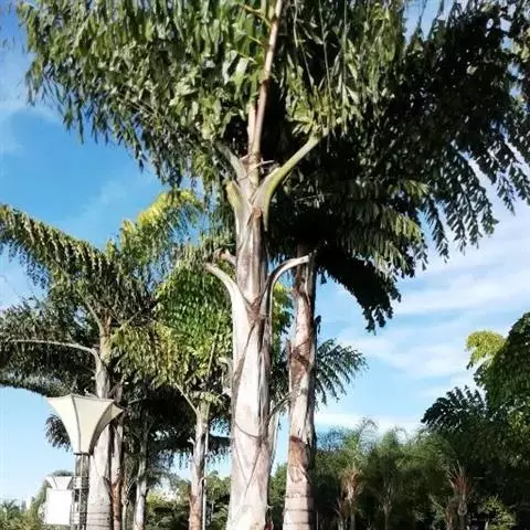 王棕O.F.Cook):又名大王椰子。乔木;单干,直立叶痕不明显,叶簇生于干顶,叶片大,长达3米以…