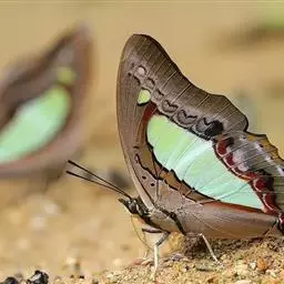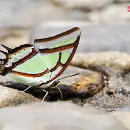 窄斑凤尾蛱蝶,Polyura athamas (Drury) ,别名凤蛱蝶,蛱蝶科,尾蛱蝶属中型蝶类,雄蝶翅展65-70mm,雌蝶翅展70-75mm雌雄同型,翅中部浅绿色,外侧有褐色宽边,后翅外缘有小尾突。