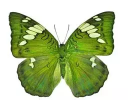 大二尾蛱蝶两翅正面黑色,中域有一浅绿色大型宽带纹,两翅反面浅绿色,中域有一缀黑边的褐色弧纹,…