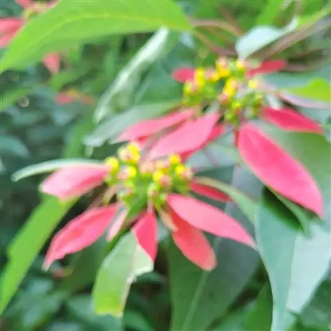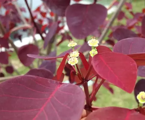 肖黄栌,紫锦木(Euphorbia cotinifolia L.)为灌木,叶染褐红色,作为观叶植物极似漆树科黄栌,故名肖黄栌。其实只需折断枝叶见流乳白汁,此乃大戟科许多种类的特征,足以分辨。