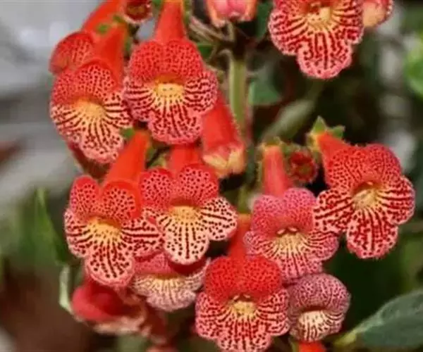 艳斑苦苣苔(Kohleria),别名花猫(Kohleriahybrida)也称“花脸”,是苦苣苔科花脸苣苔属的多年生草本植物,又名角桐草。花朵由无数的点、线及多种色块集合而成的艳斑苣苔,有着独树一格的艳丽气质,使得艳斑苦苣苔成为苦苣苔家族中最亮眼的一属。原产于中南美洲,属于苦苣苔科多年生草本植物。株高约10-50公分,全株布满细毛。叶色浅绿至深绿或紫红,部份品种叶上有斑纹,叶长椭圆形,边缘有细锯齿。花腋出,花冠筒状,花径约1-3公分,花瓣上有斑点及放射性的线条,花色有绿、红、粉红、橘等,花期为春至秋季。根部具毛虫状鳞茎,故其根茎常被网友称为“毛毛虫”,于原生地冬季休眠时地上部会萎凋,以鳞茎越冬,待春天天气转暖会再度萌发新芽;但在南方,很多品种于冬季时并不会休眠,只是开花数减少。其生性强健,花色艳丽,花期很长,病虫害少,管理容易,深得花友喜爱。