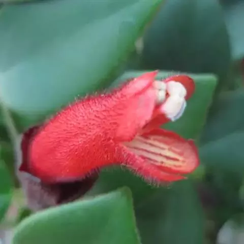 口红花 G.Don)是苦苣苔科,芒毛苣苔属常附生小灌木,茎长可达100厘米,圆柱形,叶对生,叶片革质,…