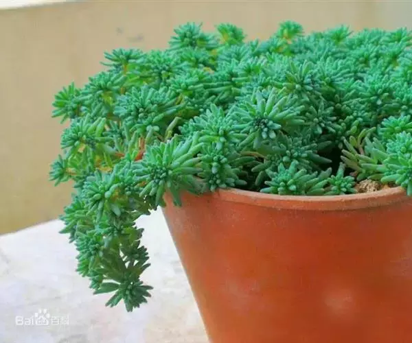 薄雪万年草 薄雪万年草是一种清秀典雅、富有野趣的小型多肉植物,因其耐旱性好,能够在土壤较少的地方生长,尤其适合点缀山石盆景或直接种植于山石上,其层次丰富,或如远观的微缩版针叶林,或像一道道绿色溪流跌宕于峰壑之间,展示着不同的风采,给人以生机盎然的感觉;也可作为树桩盆景的盆面点缀植物,满盆翠绿,更是清雅宜人。而有屋顶花园的人家更可以将其作为屋顶绿化植物,具有植株生长密集,覆盖性良好,生长迅速,耐强光曝晒、耐干旱等优点,不需要过多的打理就能够生长良好。此外,还可用小盆栽种,点缀于阳光充足的庭院、阳台、窗台等处,自然清雅,苍翠欲滴,给人们带来绿色的享受。 [2-3]