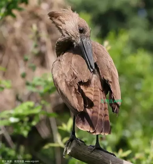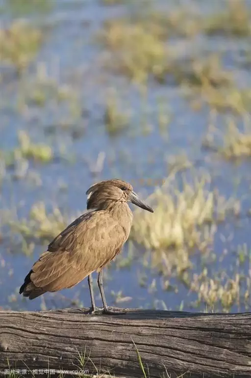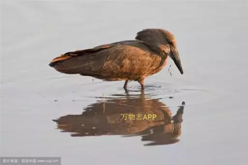 外形:锤头鹳体型较小,全长仅50厘米,体形咋一看像中型的鹭,但头、颈较短,前三趾间有微蹼。身体羽毛颜色也不漂亮,全体为褐色。雌雄同色,幼鸟也似成鸟。雏鸟多为污白色。锤头鹳奇异的外型特征是头部向后的长冠羽与嘴呈一直线使头部呈锤型,因而得名。嘴和脚黑色,虹彩褐色。
