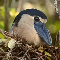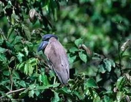 喙粗大而侧扁,尖端呈钩状,黑色,与短脚的颜色类似。黄昏时特别活跃,低著头停息溪畔,或慢慢涉行,两脚交替著搅动泥浆。觅食软体动物、蛙、小鱼和水生昆虫。用枝条在岩崖或树上筑巨大的巢窝,有时直径达1.8公尺(6呎),高达1.2公尺(4呎)。巢呈圆锥形,侧面有一个入口,从一条窄道进入垫以稀泥的中心室。每窝产白垩色卵3~6枚。