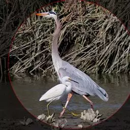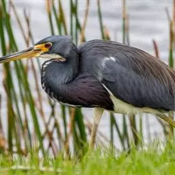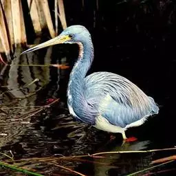 大蓝鹭是鹳形目鹭科的鸟类。共有5个亚种,体长137厘米。全身大部分羽毛呈灰蓝色羽毛,…