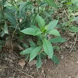 叶对生,茎端的2-3对间距极短,呈轮生状,近等大或较下部茎叶大1-2倍,叶片披针形至卵状披针形,稀卵状椭圆形,长1-4.5厘米,宽5-16毫米,先端锐尖或稍钝,基部楔状渐狭,稀为阔楔形,无毛或仅下面沿中肋被疏柔毛,干时坚纸质,两面密布粒状凸起的小腺点,中肋在下面隆起,侧脉不明显;叶柄长4-10毫米。