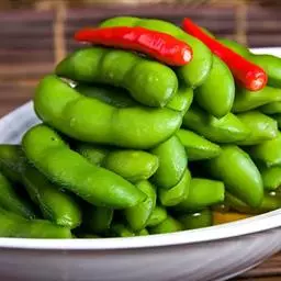 新鲜连荚的黄豆,约有五千多年的栽培历史。在吃饭的时候,来上一盘毛豆,喝上一点啤酒,其味道特别好,毛豆纤维含量丰富,对人体有好很大的好处。在之前,很多人都以为芹菜杆的纤维含量最高,其实毛豆才是当之无愧的第一名 。
