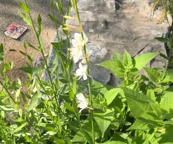 花序总状,生茎枝顶,有少数分枝,直立,花期不断伸长,密被长柔毛与腺毛;苞片卵形至披针。花于傍晚开放;萼片绿色,下部带红色,线形,反折,背面疏被曲柔毛;花瓣排向一侧,白色至粉红色,长圆形,先端钝,基部具短爪;雄蕊8,花丝白色;花药黄色,线形;花粉约50%发育;花柱无毛;柱头绿色,4裂。蒴果短纺锤状,具明显的棱。种子通常1枚成熟,长圆状卵形,淡褐色。花期5-7月。