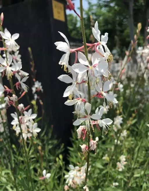山桃草(Gaura lindheimeri Engelm. et Gray),柳叶菜科山桃草属多年生宿根草本。高60-100厘米,叶无柄,椭圆状披针形或倒披针形,花期晚春至初秋;多花型,花蕾白色略带粉红,初花白色,谢花时浅粉红。花紫红色,成密生的穗状花序,花序较长。花期5-8月,果期8-9月。