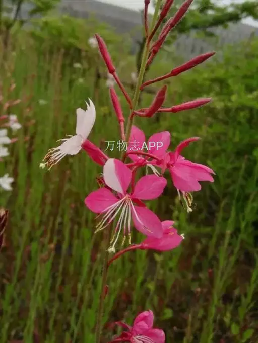 山桃草 原产于美国路易斯安那州南部及得克萨斯州,主要分布于北美洲温带,我国北京、山东、南京、浙江、江西、香港等有引种,并逸为野生。