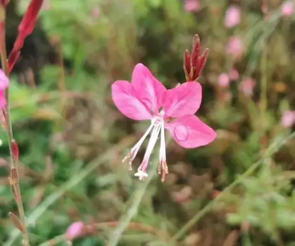 山桃草又名白蝶草、宿根草、千鸟花、白蝶花、玉蝶花、白桃花。