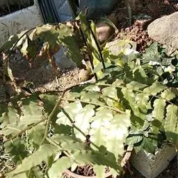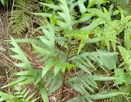 叶远生;柄长10-15厘米,粗约1毫米,浅棕色,上面有浅纵沟,光滑;叶片三角状卵形,长16-25厘米,宽14-18厘米,先端渐尖,基部为四回羽裂,中部为三回羽裂,向顶部为二回羽裂;羽片10-15对,互生,基部一对近对生,斜向上,彼此接近,基部一对最大,长8. 5-11厘米,宽4-8厘米,长三角形,渐尖头,基部不对称,柄长3-5毫米,三回深羽裂;一回小羽片约10对,互生,上先出,有短柄(长2-3毫米),羽轴上侧的略较短,基部一片与羽轴平行或覆盖羽轴,基部下侧一片最大,长4-5. 5厘米,宽2-2. 5厘米,椭圆形或长卵形,先端短渐尖,斜展,二回羽裂;二回小羽片5-7对,互生,上先出,上侧的有时略短,下侧的长8-15毫米,宽5-6毫米,椭圆形,钝头,基部为不对称的楔形,下延,深羽裂;裂片全缘,先端尖或有小缺刻;从第二对羽片起为椭圆披针形,羽轴基部上侧一片为深羽裂,其余的下侧为全缘,上侧有2-3个裂片。叶脉不甚明显,侧脉单一或分叉,几达叶边。叶革质,干后上面浅褐色,下面棕色,无毛。孢子囊群生于裂片上侧小脉顶端,每裂片1-3枚;囊群盖宽杯形,高稍过于宽,两侧边大部着生叶面,棕色,有光泽。