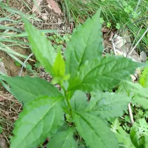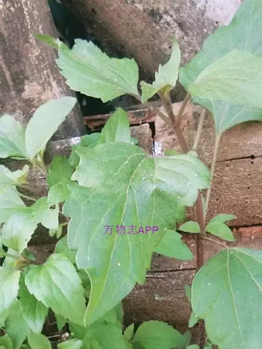 多年生草本,高30一90厘米。茎直立,分枝对生、斜上,茎上部的花序分枝伞房状;全部茎枝被白色或锈色短柔毛,上部及花序梗上的毛较密,中下部花期脱毛或无毛。叶对生,质地薄,卵形、三角状卵形或菱状卵形,长3.5—7?厘米,宽1.5—3厘米,有长叶柄,柄长4—5厘米,上面绿色,下面色淡,两面被稀疏的短柔毛,下面及沿脉的毛稍密,基部平截或稍心形,顶端急尖,基出三脉,侧脉纤细,边缘有粗大圆锯齿;接花序下部的叶波状浅齿或近全缘。头状花序多数在茎枝顶端排成伞房花序或复伞房花序,花序径2—4厘米或可达1.2厘米。总苞宽钟状,长3毫米,宽4毫米,含40—50个小花;总苞片l层或2层,线形或线状披针形,长3毫米,顶端渐尖。花托高起,圆锥状。管状花两性,淡紫色,花冠长3.5毫米。瘦果黑褐色,长1.5毫米,长椭圆形,5棱,无毛无腺点。冠毛白色,纤细,与花冠等长。花果期4—10月。