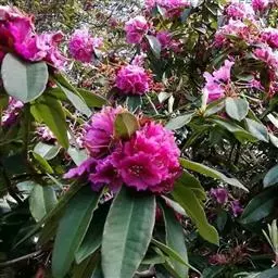 团叶杜鹃:常绿灌木,稀小乔木,高1-4.5米,稀达15米;树皮褐色;幼枝绿色,无毛,老枝黄褐色。顶…