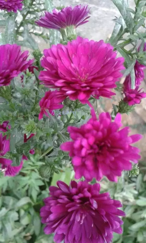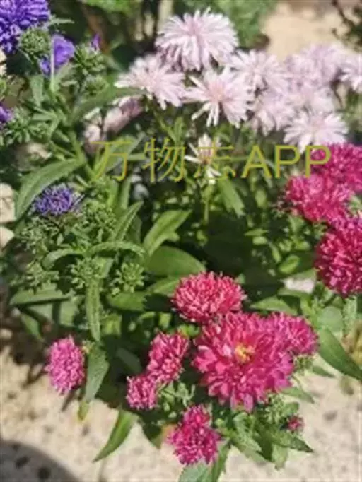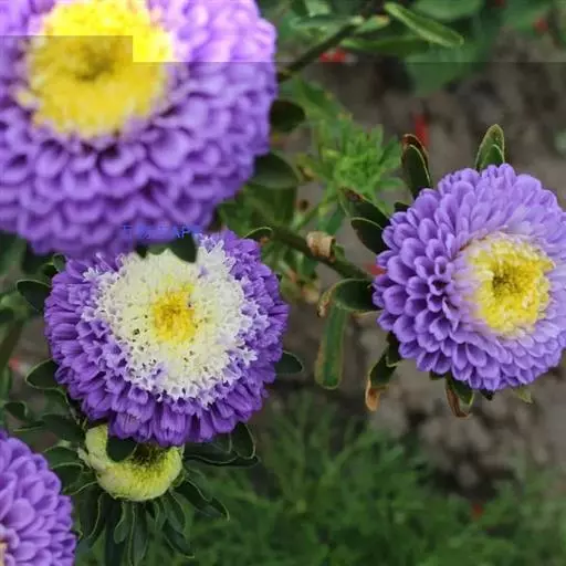 小行星(Asteroid)系列,株高25厘米,菊花型,花径10厘米,有深蓝、鲜红、白、玫瑰红、淡蓝等色,从播种至开花120天。