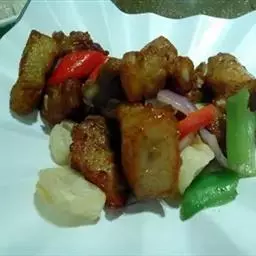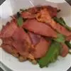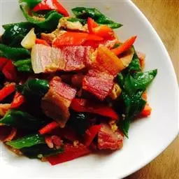 蒜香回锅肉是以五花肉、素鸡为原料制作而成的一道美食。
