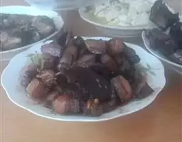 梅干菜扣肉是浙江江西地区的传统特色菜肴。用连皮五花肉烧好后,再在碗里放上腌制的梅干菜,这样梅干菜扣肉就好了。
