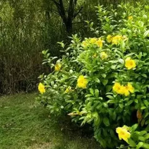 黄蝉属,夹竹桃科,约15种,分布于热带美洲,中国引入栽培的有黄蝉A. neriifolia Hoo…