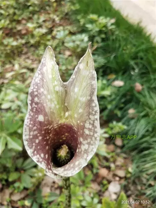 花单生或几个簇生;花梗长2-3厘米;花直径3-5厘米;花冠辐状呈五角星,外面绿色,光滑,内面黄绿色,凹凸不平,具暗紫色横条纹及斑点,花冠筒短,裂片三角状卵圆形,顶端短尖,边缘有睫毛;副花冠双轮,着生在合蕊冠上,外轮盔形,淡黄色,具淡紫褐色斑点,内轮副花冠5裂,裂端各2裂;花粉块每室1个,直立,内侧边缘有透明膜片。蓇葖平滑:种子顶端具白色绢质种毛。