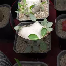上盆不宜过满,一般离盆沿2-3厘米,并刮平压实,然后用竹签打孔,顺势将插穗插入土壤中。打插深度,以稳定插穗为准,第一次只能浇好皮面水。栽好后置于荫蔽通风的地方,每天向叶片进行3-4次雾状喷水,减少叶片水分蒸发。7-10天后,可浇一次半透水,保持土表层湿润。半个月后把水浇透,因为这时的插穗,基部已出现根原体,可以吸收一些水分。浇透水以后,可把花盆移至向阳的地方,进行阳光照射。同时,莳养者一定根据盆土墒情,保持土壤疏松、透气、湿润。注意:土壤仍然不能过湿,大约20天以后,植株根系就能吸收,并且开始生长。一个月以后,可用0.2%的磷酸二氢钾水溶液,喷酒一次,促使新根生长。40-50天后,植株开始萌发新芽,并已旺盛生长。