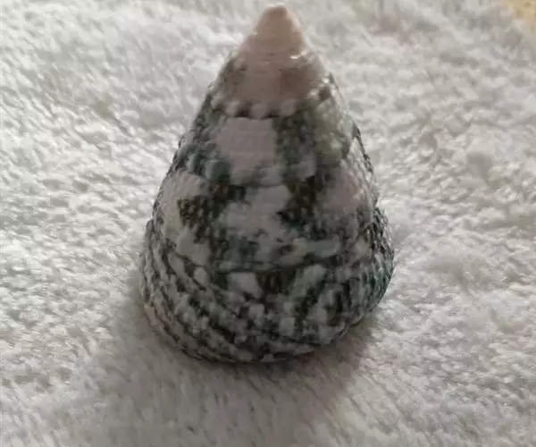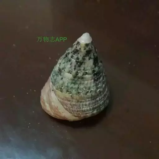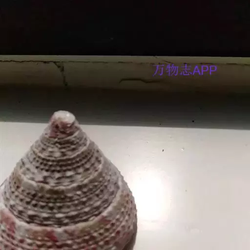 钟螺中体形最大、最重的一种,外形几乎呈等边三角形。大多数成贝的螺层除一些细斜纹外,大致光滑;中贝及所有幼贝螺层,都有管状小结节,有的在浅缝合线处形成凹槽。螺轴上有脊状齿。壳表浅粉红白色,有深红色宽斜条纹。(注:曾是制造纽扣的材料,现今仍有少量用来制作装饰品。)