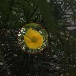 夹竹桃的花有香气。花集中长在枝条的顶端,它们聚集在一起好似一把张开的伞。夹竹桃花的形状像漏斗,花瓣相互重叠,有红色、黄色和白色三种,其中,红色是它自然的色彩,“白色”、“黄色”是人工长期培育造就的新品种。