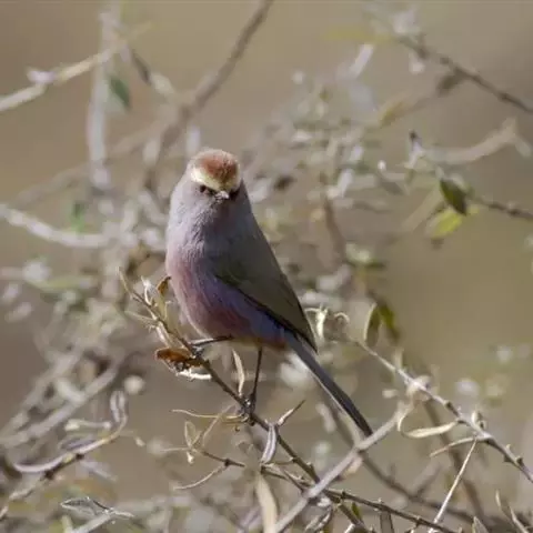 凤头雀莺:小型鸟类。体长9-10厘米,雄鸟呈毛茸茸的紫色和绛紫色,顶冠淡紫灰色,额及凤头白色,尾全蓝。…