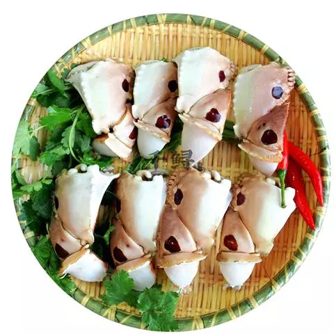 肉多,脂膏肥满,味鲜美,营养丰富。每百克蟹内含蛋白质14克、脂肪2.6克。鲜食以蒸食为主,还可盐渍加工“呛蟹”、蟹酱,蟹卵经漂洗晒干即成为“蟹籽”,均是海味品中之上品。