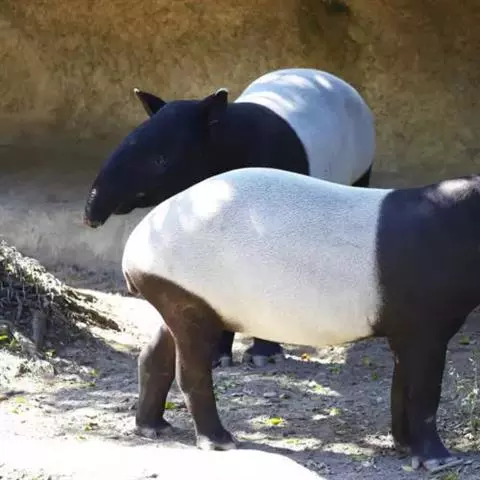 亚洲貘:亦称马来貘,是貘类中最大的一种,体长为1.8-2.5米,肩高90-120厘米,尾长5-10…
