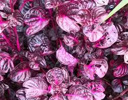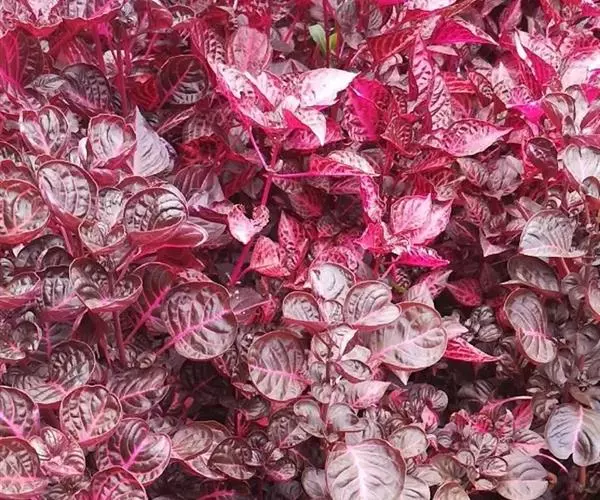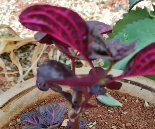 血苋全株紫红色,叶片绿色光亮,叶脉呈黄色或红色,叶色艳丽, 血苋 十分耐看。适宜盆栽、吊盆栽栽培和花坛、花径配置。
