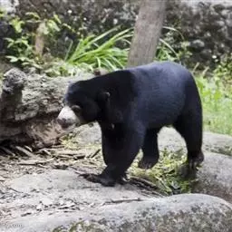 马来熊,是食肉目熊科马来熊属哺乳动物。体胖颈短,眼睛和耳朵小;头部短圆;全身乌黑光滑;鼻唇周为棕黄色,…