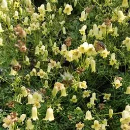 聚伞花序腋生,常1-3花,无毛,花序梗长2-7厘米,顶端生一对叶状苞片;苞片长椭圆状披针形,长5-9厘米,宽1-2.5厘米,边缘常全缘,稀有时分裂,具长约1厘米的细弱短柄;花梗长1-4厘米;花钟状,下垂、直径2-3.5厘米,萼片4枚,淡黄色,卵圆形或卵状椭圆形,长2.5-3厘米,宽1-1.2厘米,顶端急尖,外面无毛,内面微被紧贴的短柔毛,边缘密被淡黄色绒毛;雄蕊比萼片短,长1.5-2厘米,花丝线形,基部无毛,上部的背面及两侧被稀疏开展的柔毛,花药及药隔密被短柔毛,药隔在顶端有尖头状突起;心皮被短柔毛,花柱细瘦被绢状毛。瘦果棕色,纺锤形或倒卵形,长5毫米,宽约2毫米,被短柔毛,宿存花柱长4-5厘米,丝状,被黄色长柔毛。花期8月至9月,果期9月至10月。