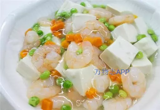 主料:豆腐 400克 辅料:虾仁 150克 毛豆 50克