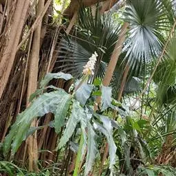 海南山姜是姜科,山姜属多年生草本植物,叶片带形,顶端渐尖并有一旋卷的尾状尖头,基部渐狭,…