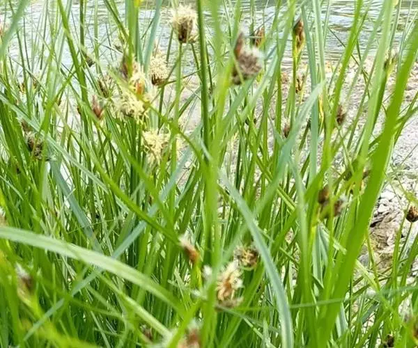 扁秆荆三棱(学名:Bolboschoenus planicalmis (F. Schmidt) Egorova)是莎草科,三棱草属具匍匐根状茎和块茎。秆高可达100厘米,三棱形,叶平张,具长鞘。苞片叶状,通常长于花序,边缘粗糙;花药线形,药隔稍突出;小坚果倒卵形,扁,5-9月开花结果。