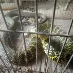 王锦蛇,又称菜花蛇,是游蛇科锦蛇属蛇类。该蛇类无毒;体型较为粗壮;身体总长一般为1500~2000毫米,体重可达1050~1250克。其头部前端具有独特的黑色“王”字形斑纹;背部呈暗黄绿色,前半部分带有黄色横斜纹斑,腹部为黄色并伴有黑色斑点,幼蛇通身浅藕褐色,鳞间皮肤略黑。王锦蛇分布于越南、中国、日本和缅甸。在中国,其分布范围广泛,分布于河南、陕西、四川、湖北、云南、江苏、浙江、广东、广西等省区。栖息环境包括山间林区、丘陵地带及平原,垂直分布范围为100~2300米。该蛇类食性杂,主要以蛙类、鱼类、蜥蜴、鸟类和鼠类为食。肛腺发达,具有异臭。王锦蛇因其嗜食鼠类而能够有效控制鼠类数量,对保持生态平衡及农林业有益。自2005年以来,中国对王锦蛇的贸易几乎完全停止;2020年,中国国家林业和草原局发布了《关于规范禁食野生动物分类管理范围的通知》,禁止以食用为