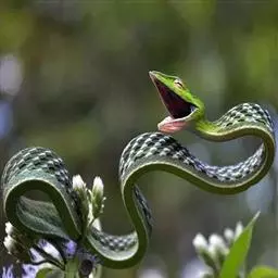 红脖颈槽蛇:游蛇科、颈槽蛇属的爬行动物。体型中等大小,全长约77-95厘米。头背草绿色,上唇鳞色稍浅,…
