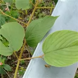 嫩枝无毛。叶膜质,卵形或倒卵形,长3.5-5.5厘米,宽2-3厘米,先端短急尖,基部心形,下面秃净无毛,侧脉7对,边缘有小锯齿,齿突刺毛状,叶柄长6-8毫米,无毛。蒴果硬木质,长1.3厘米、宽1厘米,无毛。